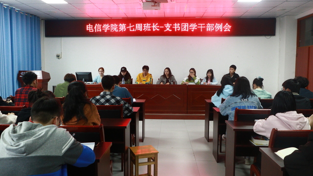 电信学院第七周班长-支书团学干部例会电信学院第七周班长-支书团学干部例会 通讯员:秦华廷 为进一步加强各班级与部门的建设,确保学院各项工作顺利开展。我院于4月7日中午12:20在格物楼1508会议室召开第七周干部例会。19级辅导员李阳莉、全体团学干部和各班代表参加。本次例会由主席团成员郭原宏主持。 会议伊始,办公室工作人员进行点名。