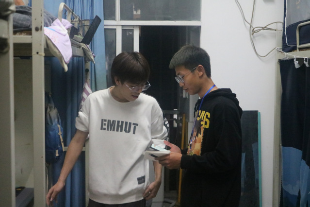 活动伊始,负责人组织工作人员集合。随后,工作人员就寝室晚归、违规电器、私接乱接电源、饲养宠物、存放管制刀具酒瓶、吸烟以及清洁卫生等方面进行检查。检查过程中,工作人员如实排查寝室安全隐患,清点寝室人数,对寝室卫生清洁方面提出建议。