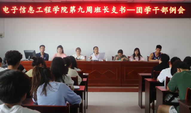 电信学院第九周班长-支书团学干部例会电信学院第九周班长-支书团学干部例会 通讯员:张玉洁 为进一步落实学院下一步的工作计划,加强各部门之间的配合以及班级与部门的建设。我院于4月21日中午12:20在格物楼1508会议室召开第九周干部例会。此次会议由主席团成员何德凤主持,21级辅导员谭洲敏、全体团学干部和各班代表参与此会。