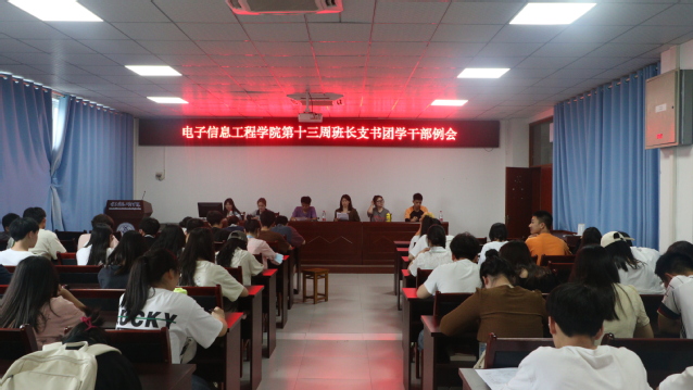 电信学院第十三周班长支书团学干部例会电信学院第十三周班长支书团学干部例会 通讯员:舒正阳 为进一步提高学院的工作效率,推进团学干部换届工作。我院于5月19日12:20在格物楼1508召开第十三周干部例会。此次会议由主席团成员郭原宏主持,22级辅导员邓志平、全体团学干部和各班代表参加此次会议。