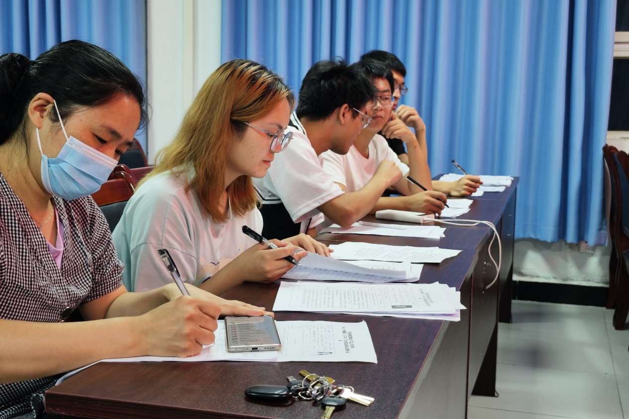 活动伊始,志愿者们有序地在1508会议室外等待,按照工作人员的指示进入会议室。活动过程采取单人轮番面试:面试者先进行自我介绍,后才艺展示。指导老师谭洲敏同志带领整个面试组对志愿者的个人经历、思想道德、身体素质、参与该活动的原因,根据事前拟定的评分标准对面试者进行综合考查,最终招募到才艺组3名,视频组6名,新闻组6名,沟通组4名,手工绘画共计21名志愿者参与电子信息工程学院2023年暑期“三下乡”。