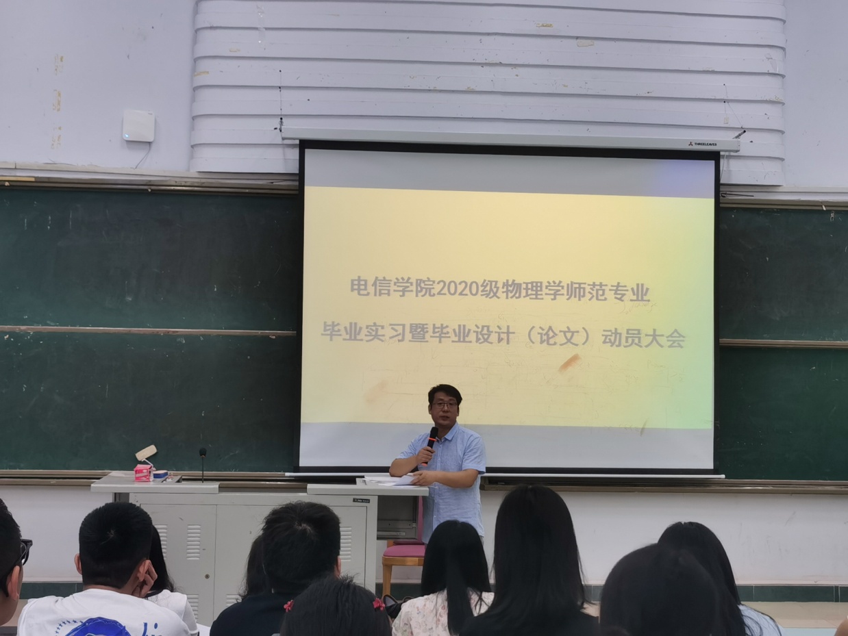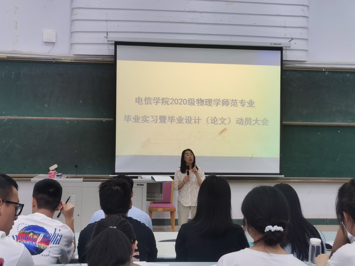 2020级物理学师范专业毕业实习暨毕业设计 (论文)动员大会2020级物理学师范专业毕业实习暨毕业设计 (论文)动员大会 通讯员:李秀莲 6月25日早上9点,我院在正心楼01召开2020级物理学师范专业毕业实习暨毕业设计(论文)动员大会。党委书记张敏,副院长郭红力,20级辅导员杨倩,物理学专业老师葛泽玲以及20级物理学师范专业学生参加此次会议。