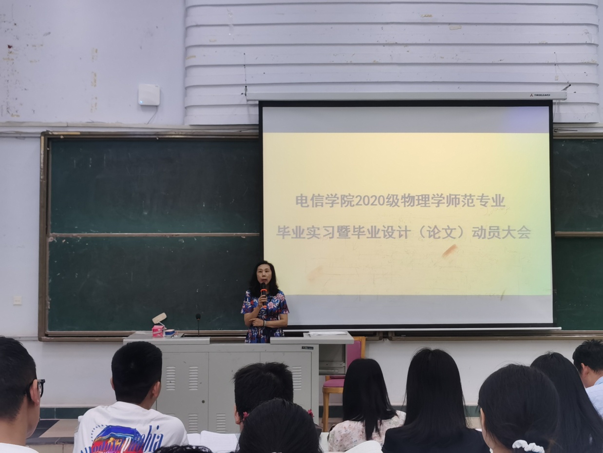 会议伊始,郭红力院长从毕业设计(论文)开展方式、进度安排、纪律要求进行部署。随后,葛泽玲老师对2020级各专业毕业实习工作进行安排,同时,对物理师范学生专业实习目的、时间、内容、方式、考核作出具体要求。张敏书记再次强调毕业实习的重要意义。希望同学们端正态度,放下身段,脚踏实地。