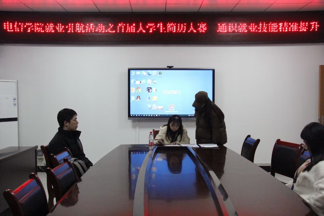 电信学院举办首届大学生简历大赛电信学院举办首届大学生简历大赛 通识就业技能精准提升 通讯员:谢思博 为切实做好我院毕业生就业工作,引导大学生立足实际、找准定位,树立理性平实的择业观、就业观,实现高质量充分就业,提升就业工作质量,确保全面完成就业目标任务,展现学院人才培养质量和水平。我院于2024年1月3日19:30在格物楼1508、1417、1210教室举办“电信学院就业引航活动之首届大学生简历大赛——通识就业技能精准提升”活动以启动2025届就业工作。我院邀请到重庆粤嵌科技有限公司教务老师严陈铖、就业经理杨桂清、渠道经理刘昶作为指导老师出席此次活动。21级电信类学子参加此次活动。 通过实际操作,同学们对简历制作有了更深入的了解,为今后的求职之路奠定基础。参与活动的同学们纷纷表示,此次大赛让他们受益匪浅,对未来的就业充满了信心。电信学院将继续举办更多有益于学生就业的活动,为同学们的职业生涯保驾护航。