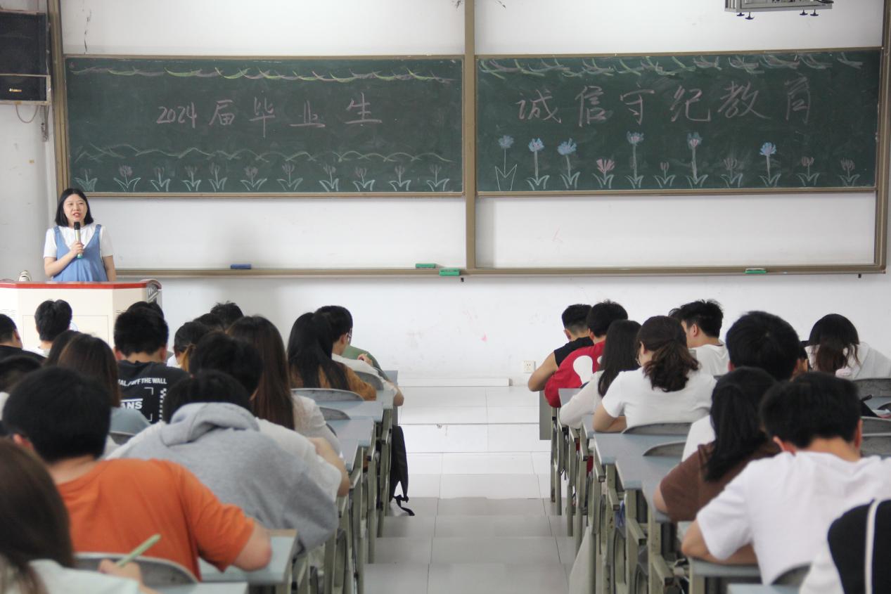 为提升同学们的诚信意识和纪律观念,营造积极向上的学习氛围和校园文化。我院于5月10日11:00在格03成功举办了以“诚信守纪”为主题的学生道德教育讲座。本次讲座由20级辅导员杨倩主讲。