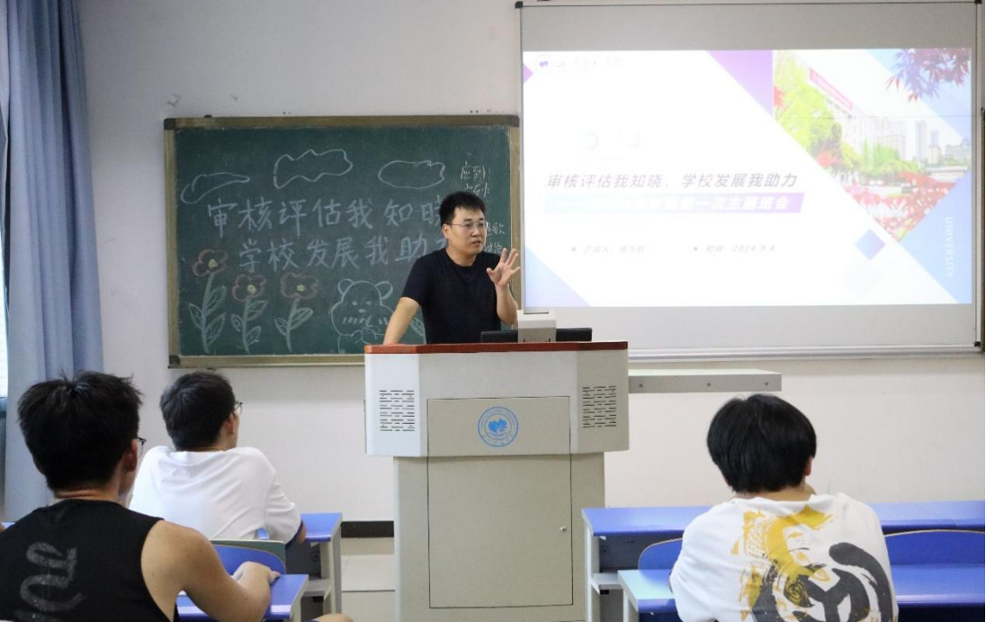 会议第四项,事务传达。各班班导师以审核评估为切入点,具体剖析阐述审核评估的内涵并展示学生在审核评估中所担任的角色,促进学生正确认识评估、全面了解评估,鼓励学生们将评估中发现的问题转化为改进的动力,不断努力。