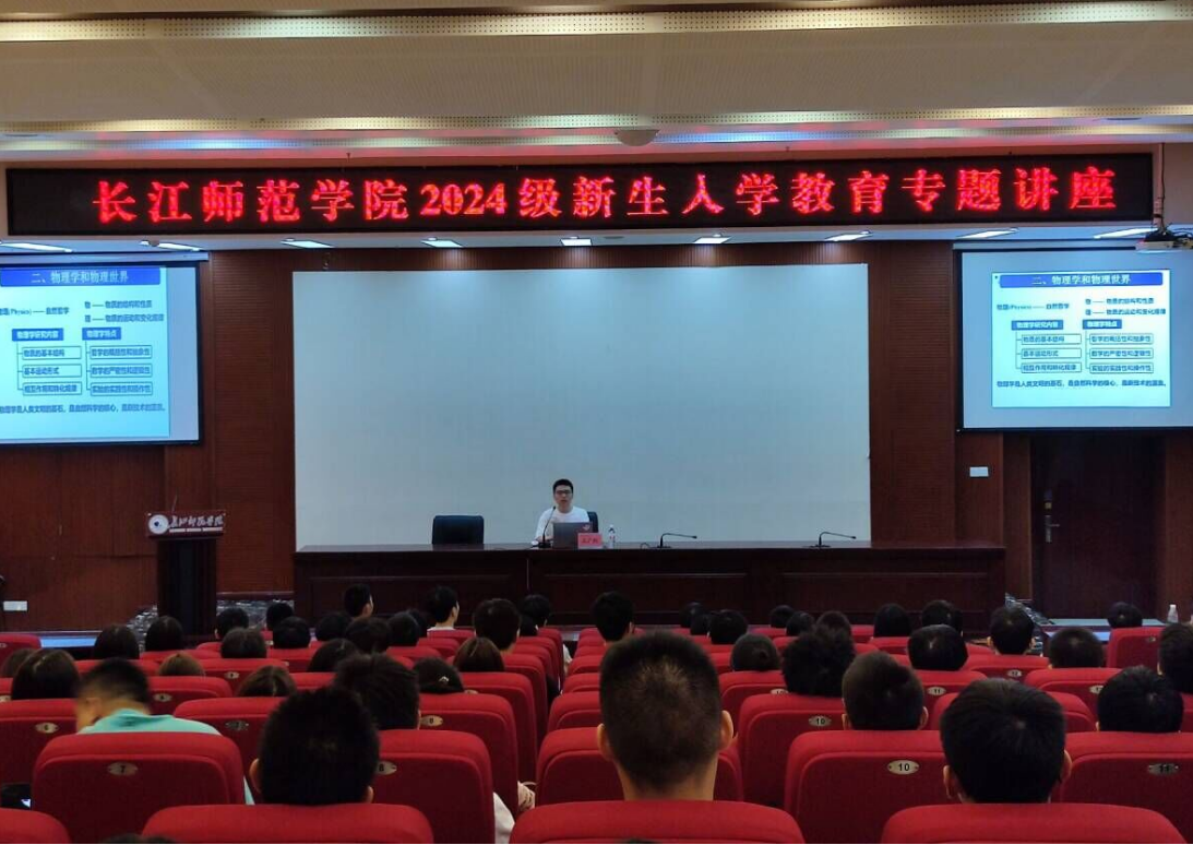 24级物理师范专业思想教育讲座24级物理师范专业思想教育讲座 通讯员:何彦黎 为帮助新生们迅速适应大学生活,确立清晰的学习目标,培育正确的价值观念,深入挖掘物理学的无穷魅力,激发他们对科学探索的无尽热情。我院于9月11日在开阳学术报告厅召开物理师范专业思想教育讲座,班导师王广钊主讲,24级全体学生参与。