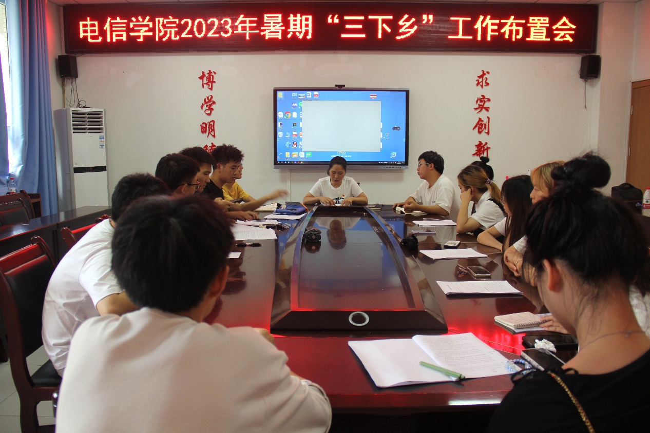 为深入学习习近平新时代中国特色社会主义思想,进一步动员社会各方力量,全面推进乡村振兴,2023年7月2日上午10时,电子信息工程学院在格物楼1417会议室召开了2023年暑期“三下乡”工作布置会。负责此次“三下乡”的指导老师谭洲敏主持会议,“三下乡”全体志愿者参加。