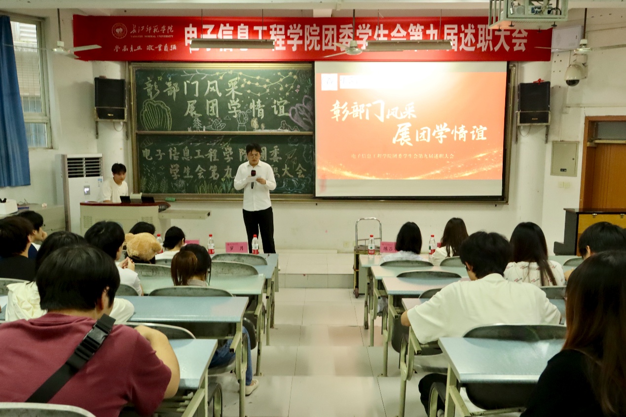 为展示我院团委学生会的工作成效,深度促进各部门之间的沟通协作,传承并弘扬学院团委学生会独有的文化精神,我院于6月5日19:00在格03教室召开电信学院第九届团委学生会部门述职大会。团委书记罗月,21级辅导员谭洲敏,22级辅导员邓志平,23级辅导员陈玲,24级辅导员陈吕豪担任本次比赛的评委,全体团学骨干参会。