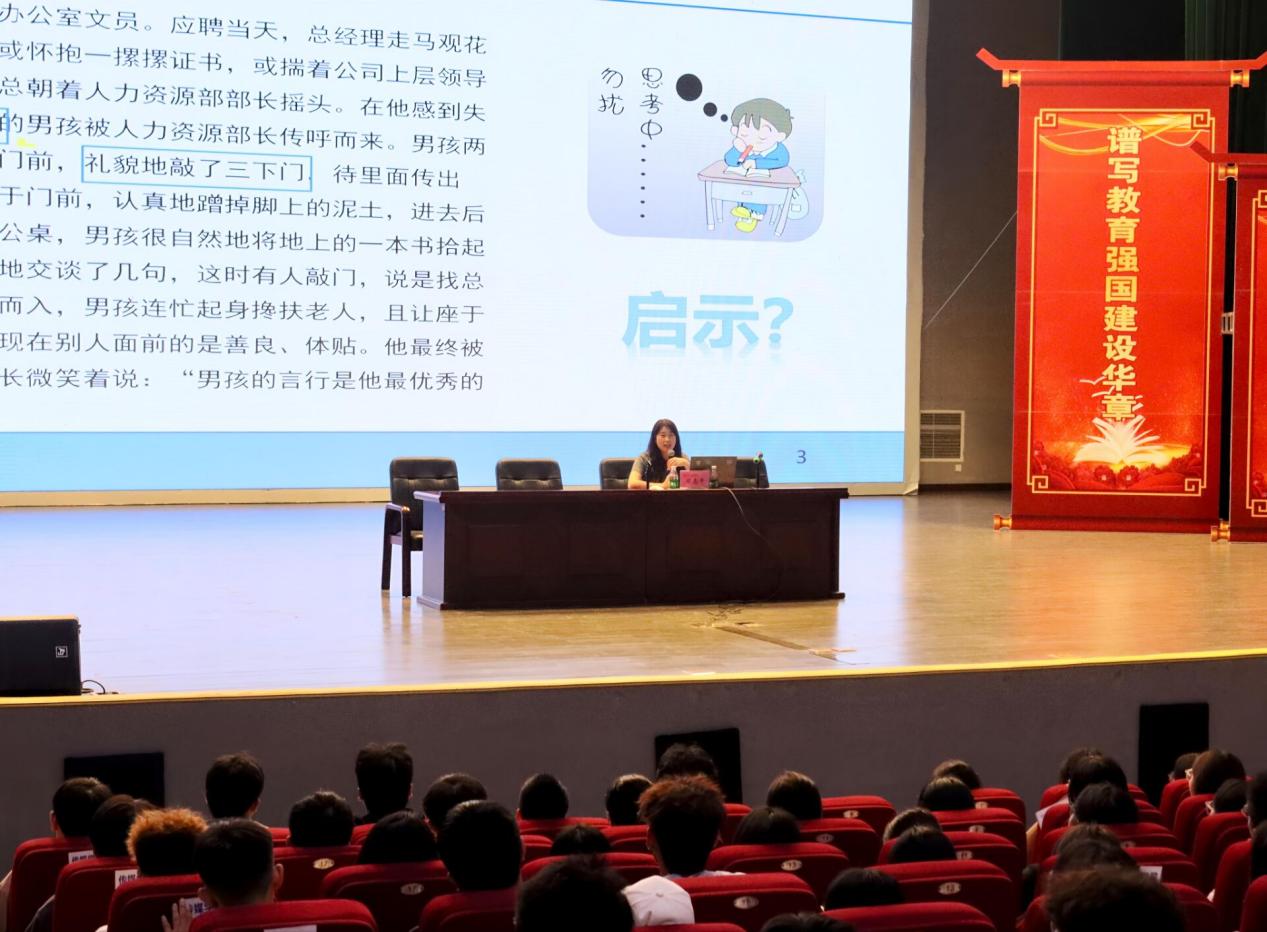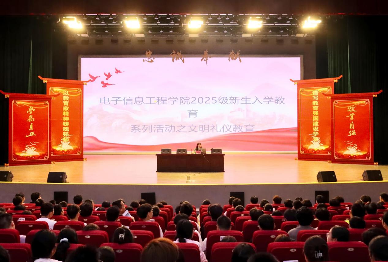 为进一步引导新生养成知礼、守礼、懂礼的良好习惯,全面提升大学生的综合素养,我院于2025年9月14日10:40在拏云活动中心开展电信学院2025级新生入学教育系列活动之文明礼仪教育讲座,22级辅导员邓志平担任主讲。