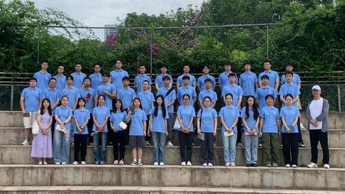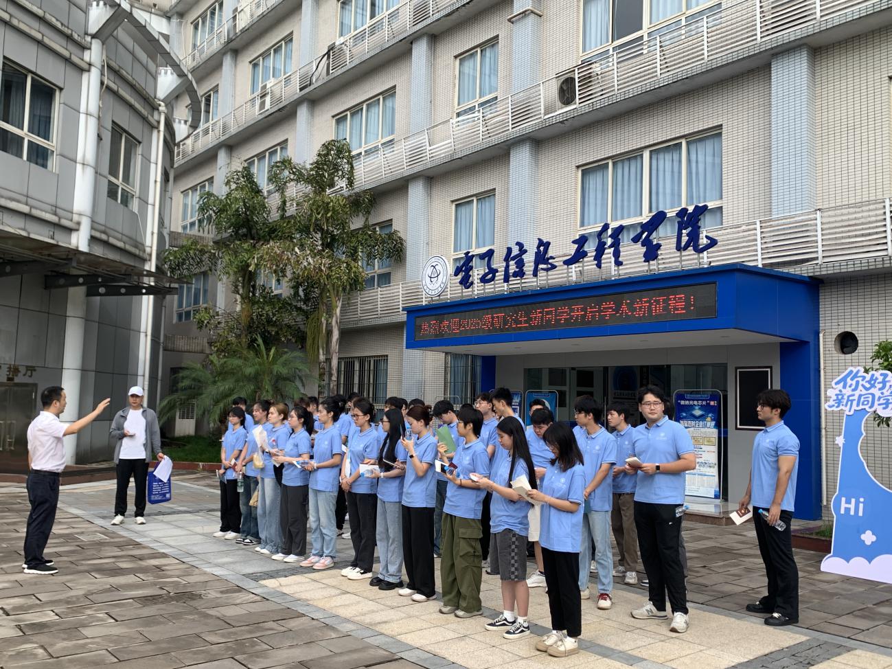 新生在易巧钧老师/白云峰老师讲解下,深入了解前沿科研平台 沿着校园主干道,队伍途经南门广场、崇礼楼、天一广场,在途经点留下了两张洋溢着青春笑容的集体合影。郑晓春老师沿途为大家介绍了各建筑的功能与校园生活小贴士,让新生对未来学习生活的“地图”有了清晰的认识。