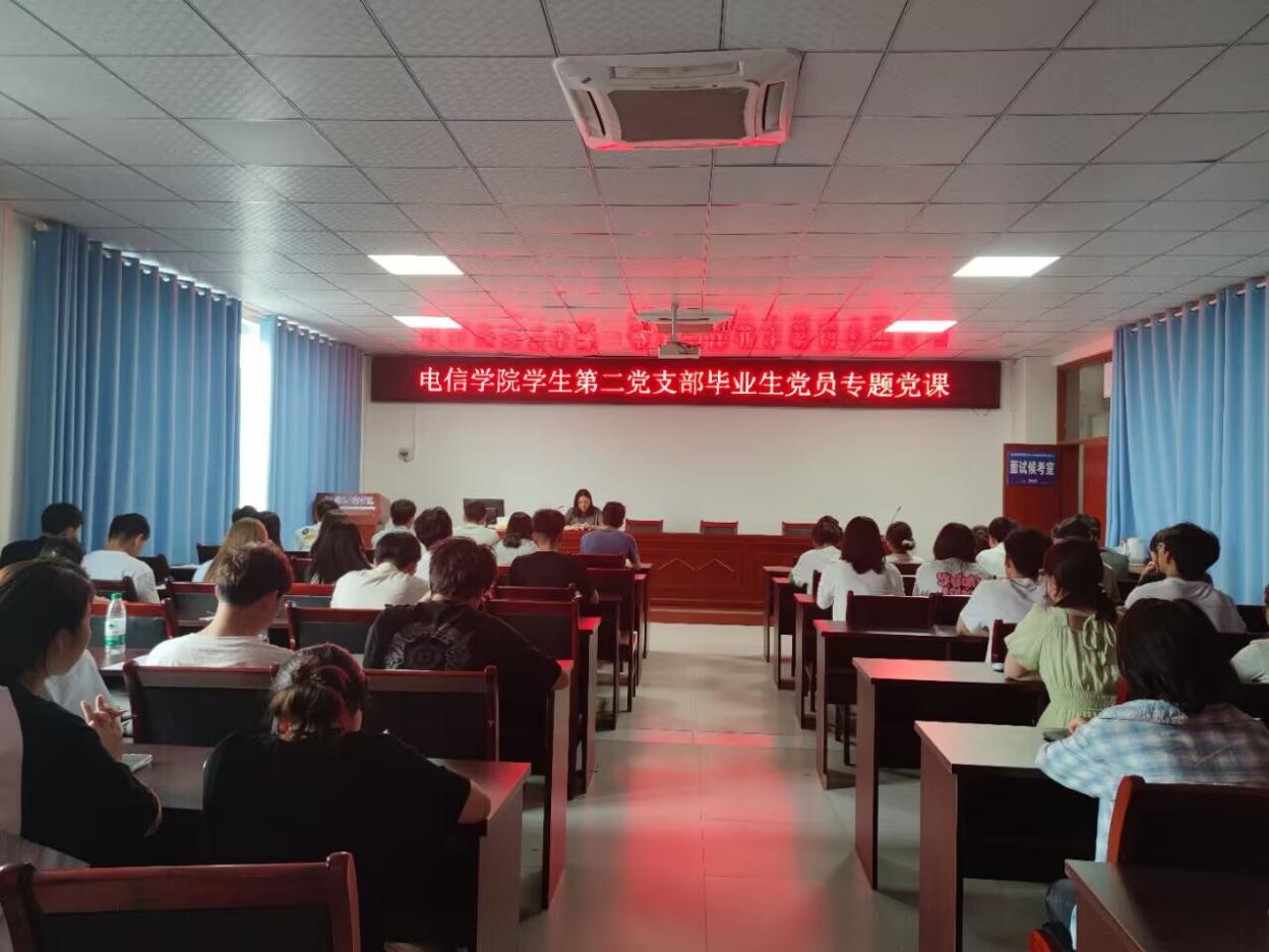 5月23日下午16:00,电信学院学生第二党支部在格物楼1508召开“逐梦青春,不负韶华”毕业生党员专题党课,由党支部书记杨倩主持,全体党员积极参与。