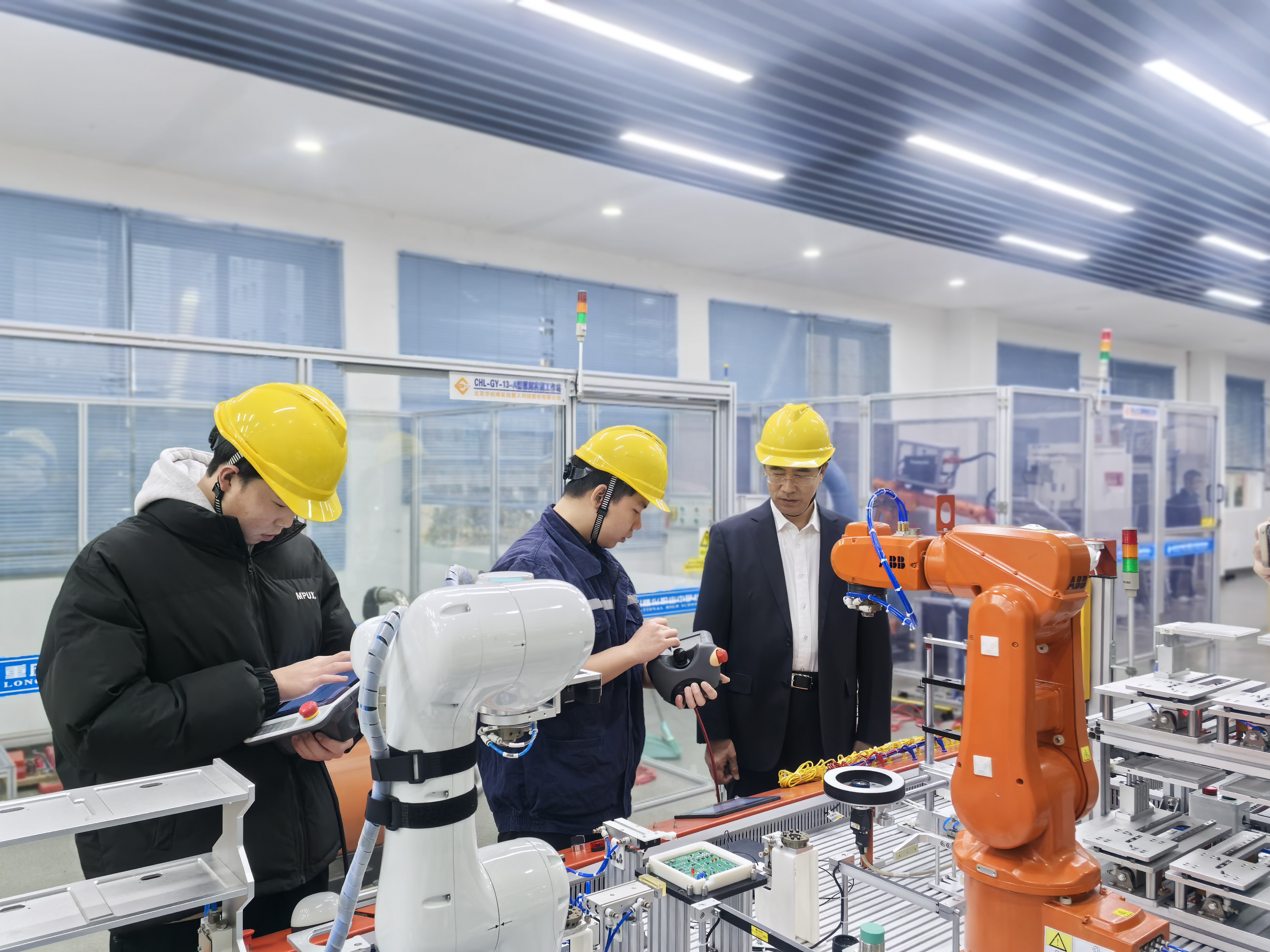 图8 张健指导工业机器人专业学生实训 他的改革经验不仅得到了业内的广泛认可,更为他赢得了众多荣誉。他主持的教学成果荣获国家级教学成果一等奖,先后被评为重庆市特级教师、重庆英才·名家名师。他的成就不仅是个人的荣耀,更是母校的骄傲。