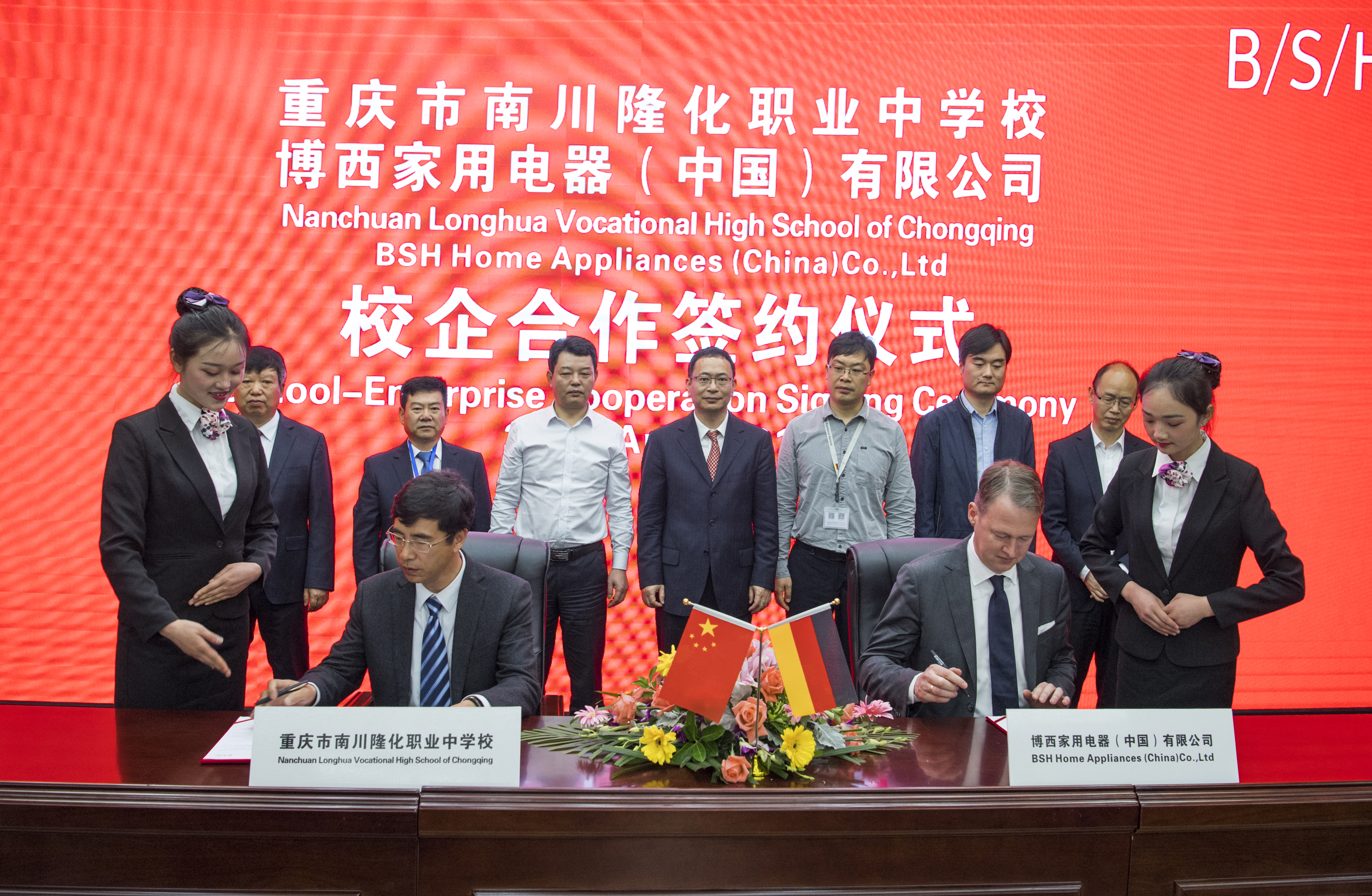 图4 隆化职中与博西家用电器(中国)有限公司签订合作协议 在探索“SUC”人才培养模式的过程中,张健与世界500强企业博西家电集团展开深度校企合作。他借助高等院校的智力支持,构建“订单式”培养模式,累计为博西家电集团培养技能人才1000余人。这些学生不仅掌握了扎实的专业技能,还具备了良好的职业素养。他们毕业后,平均月薪达到了12000元以上,部分优秀学生的月薪甚至达到了2万元。这一成果不仅得到了企业的广泛认可,也为职业教育的发展树立了新的标杆。