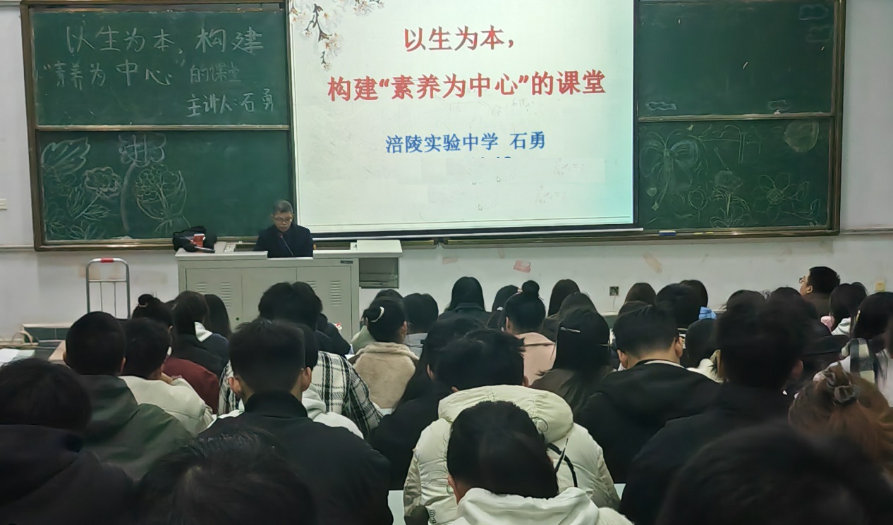 11月19日下午,重庆市涪陵实验中学校石勇老师受邀做客学院首届研究生学术创新论坛(第八期),在正心楼阶梯教室为我院2025级硕士研究生、2022、2023级物理学专业本科生作题为“以生为本,构建素养为中心的课堂”的学术报告。报告由学院副院长谭勇主持。