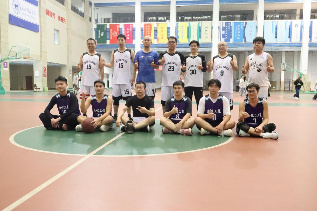 历经多轮角逐,23级通信专升本与教师代表队最终进入决赛。伴随着比赛开始的哨响,双方选手高高跃起,争夺球权。球员们或是强行突破上篮,高高跃起封盖,或是稳稳命中一记远投,每一个回合都牵动着全场观众的神经,双方球员都用自己的汗水和努力为观众们献上了一场精彩绝伦的比赛。场上响起了热烈而持久的掌声,这掌声不仅是对胜利者的祝贺,更是对双方球员拼搏精神的肯定和赞扬。比赛中双方始终秉承“友谊第一,比赛第二”的崇高精神,相互击掌致意,一起合影留念,记录下这难忘的时刻,见证着师生之间深厚的情谊。终场哨声终于响起,教师代表队凭借着更加出色的发挥和默契的配合,锁定了胜局。