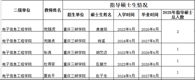 根据学校有关2025年教师指导硕士、博士相关申请材料的要求,经个人申报,学院审核,现将2025年教师作为第一导师指导研究生的名单进行公示(见汇总表)。公示时间为3个工作日(从2025年12月10日至2025年12月12日止)。