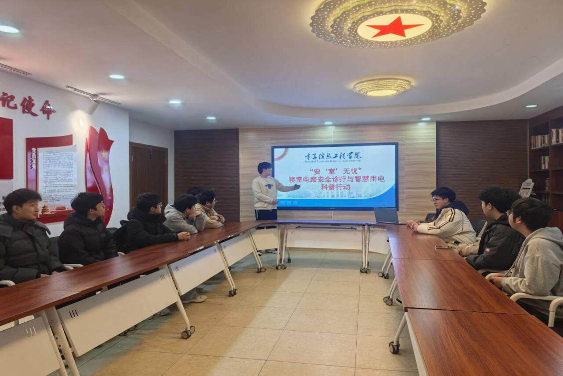 安“室”无忧—— 寝室电路安全诊疗与智慧用电科普行动为切实筑牢学生寝室用电安全防线,将专业知识转化为服务校园安全的实际力量,2025年11月20日,电子信息工程学院依托学科专业优势,在南苑学生社区组织开展“安‘室’无忧——寝室电路安全诊疗与智慧用电科普行动”,为学生寝室用电安全保驾护航,赢得了师生的广泛好评。
