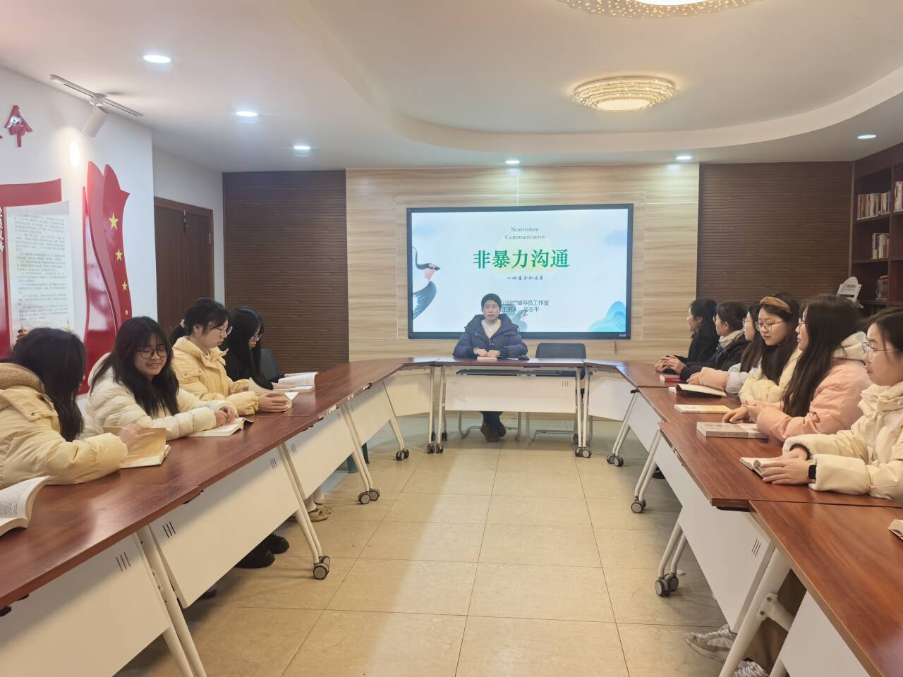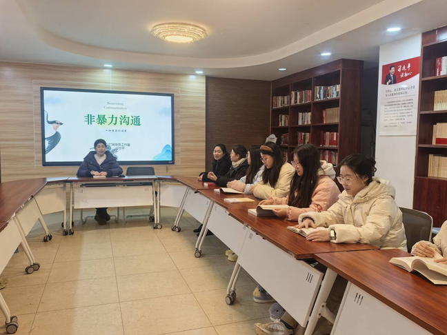 活动现场,邓老师围绕《非暴力沟通》的核心精髓展开深度解读,通过“观察—感受—需要—请求”四要素拆解,清晰区分“暴力沟通”与“非暴力沟通”的本质差异,用“任务延迟交付”“朋友爽约”等贴近学生生活的案例,生动演示如何用客观描述替代主观评判、用情绪表达替代指责抱怨。在互动交流环节,同学们结合校园交往、团队协作、家庭沟通中的实际困惑踊跃发言,分享自己曾陷入的沟通误区。有同学谈到“此前总用‘你从不听我说话’指责他人,反而引发矛盾”,在学习非暴力沟通方法后,学会了“具体场景+真实感受+核心需求”的表达逻辑;现场还通过情景模拟、案例复盘等形式,让同学们沉浸式练习沟通技巧,在思想碰撞中深化理解。