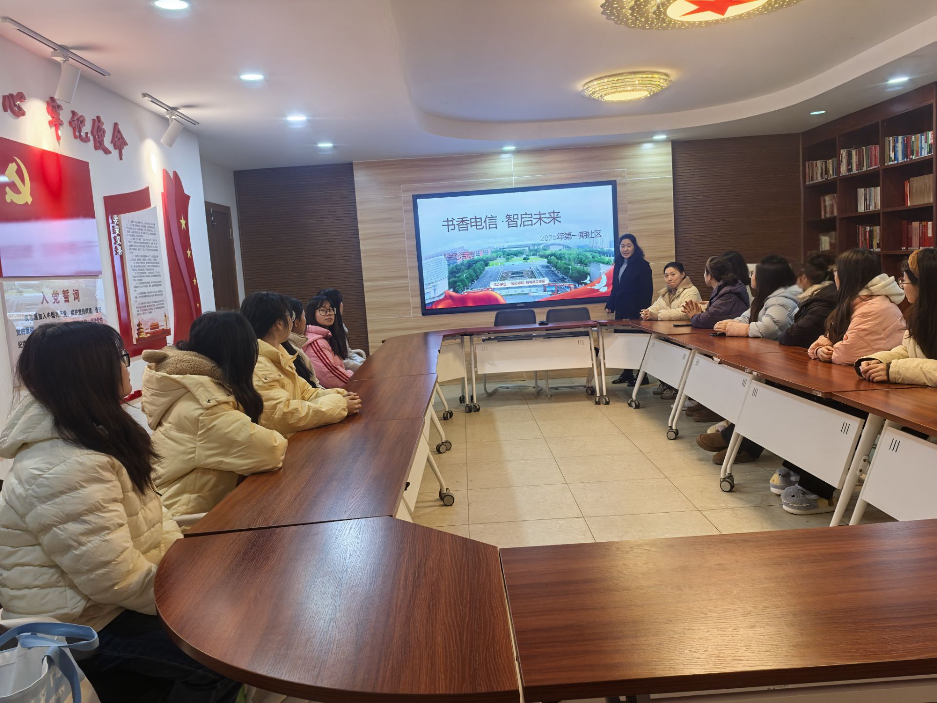 电信学院“书香电信 智启未来”——第1期读书活动顺利开展引导学生感受经典文学的精神力量,培养坚韧不拔的意志品质,11 月 2 日,由电信学院主办、知行领航辅导员工作室承办的“书香电信,智启未来”品牌特色活动在南苑8舍开展,本次活动由工作室成员谭洲敏老师主讲。