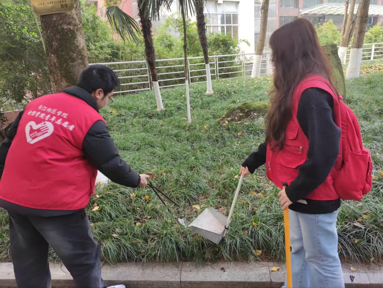 微光聚合力 青春护绿行 ——电子信息工程学院志愿者服务团开展河小青志愿活动通讯员:卢王玲 为将“绿水青山就是金山银山”理念转化为青年自觉行动,11月7日中午,电子信息工程学院志愿者服务团的9名志愿者于校内图书馆区域开展环保清洁志愿服务,以实际行动美化校园、传递环保理念,为冬日校园增添暖心亮色。