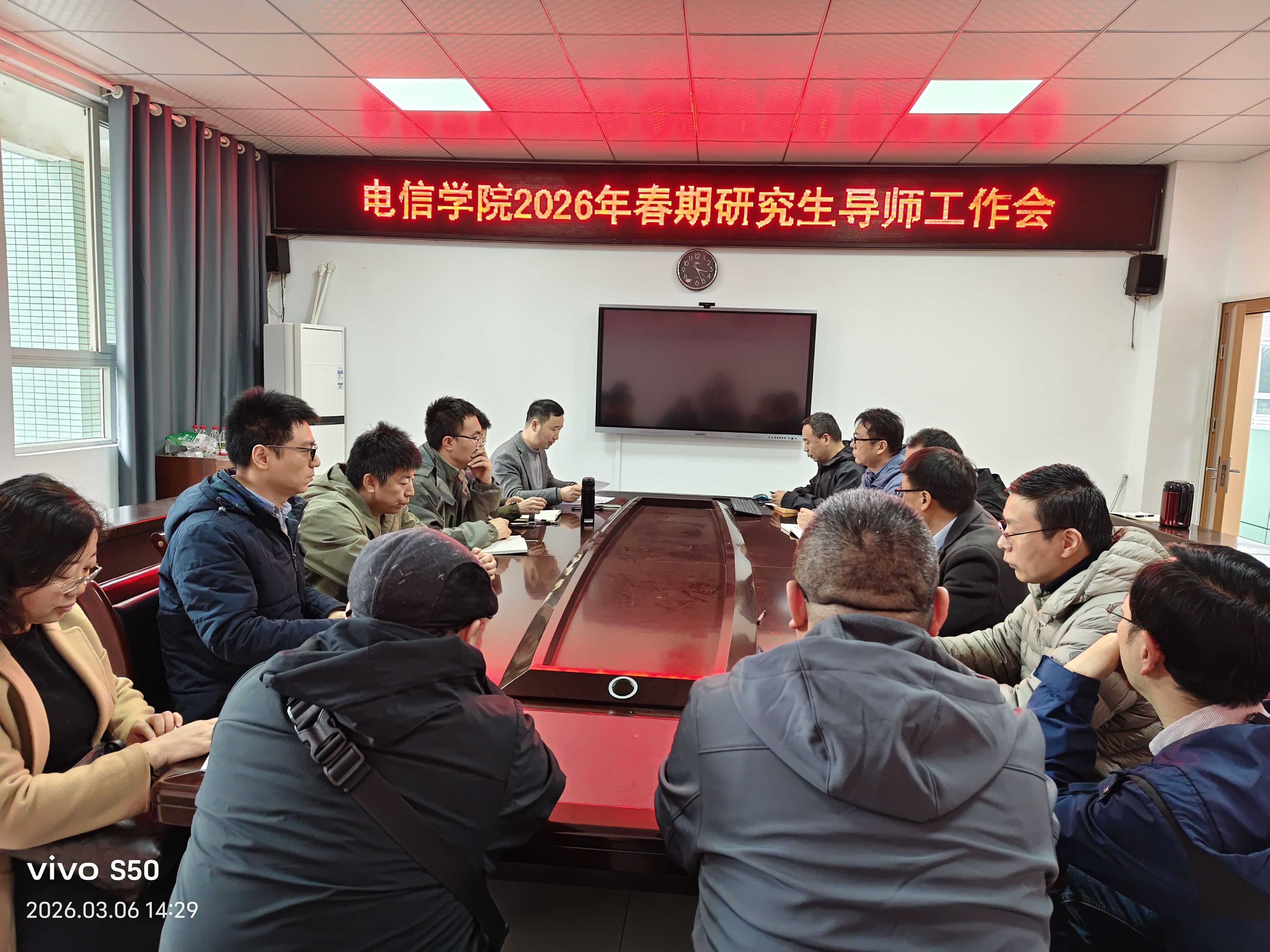 为贯彻落实学校开学工作会精神,推动电信学院本学期研究生培养工作高质量开展,3月6日下午,学院在格物楼1417会议室召开了2026年春期导师工作会。院领导和全体研究生导师参会。
