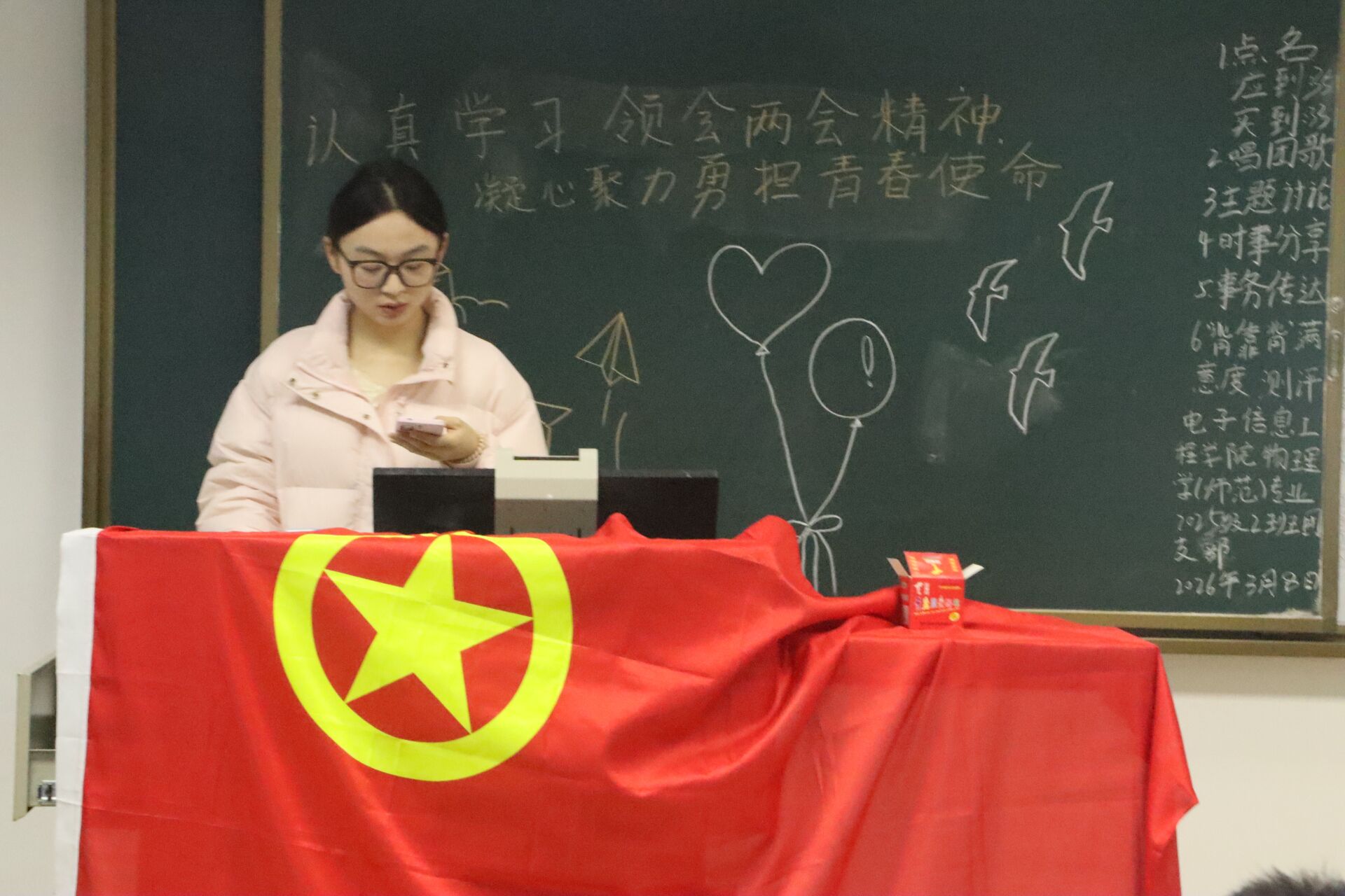 3月8日16:30,电信学院于崇礼楼四楼开展“认真学习领会两会精神,凝心聚力勇担青春使命”主题团会,23至25级全体学生参加。