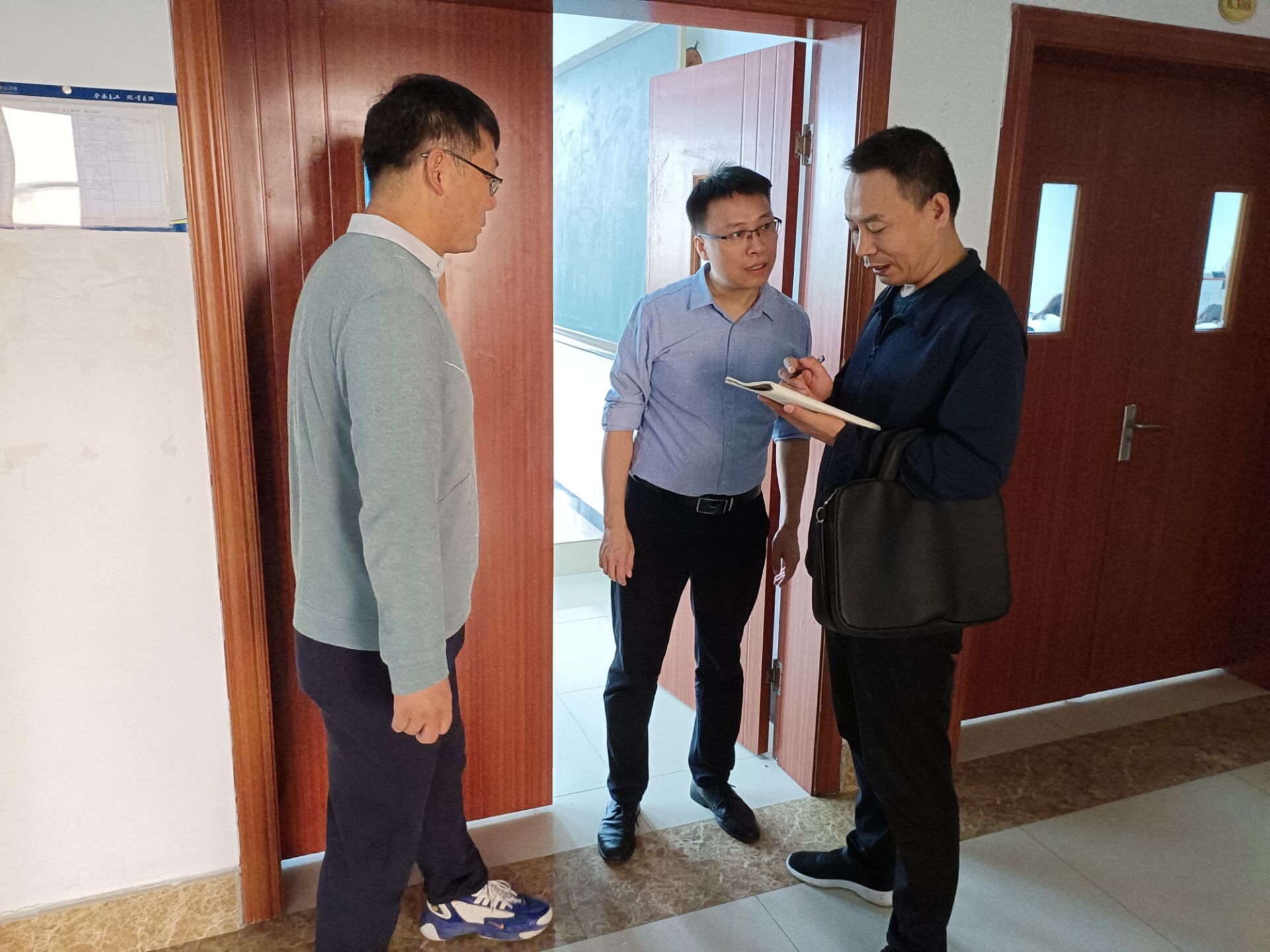 重振精气神 筑梦新学年酷暑退去,秋意盎然。随着疫情缓解,教学秩序恢复正常,从本周开始教学全部由线上转到线下。9月26日是线下教学第一天,上午8时我院到崇礼楼和沟深楼对教师到岗情况、学生到课率、课堂秩序、疫情防控等教学情况进行了检查,了解返校学生特别是2022级新同学的上课出勤和精神风貌,及时掌握学生返校后的学习动态。电信学院院长党随虎,副院长郭红力及副院长谭勇参加此次教学检查。 本次检查了四个年级10多门课程,全体任课教师均能提前到岗,精神饱满、教学态度认真,课前准备充分,课堂教学井然有序,教师对学生在课堂上提出了各项严格要求;学生到课率高,认真听讲,课堂纪律良好,能积极参与课堂活动。整体来看,全部课程顺利实施线下教学,全院师生以良好的精神面貌开启新学期的学习。 本次检查行动为本学期教学创造良好的开端。检查结束后,学院领导讨论本学期教学方面的重点工作,并对本次教学检查发现的问题提出改进的措施。
