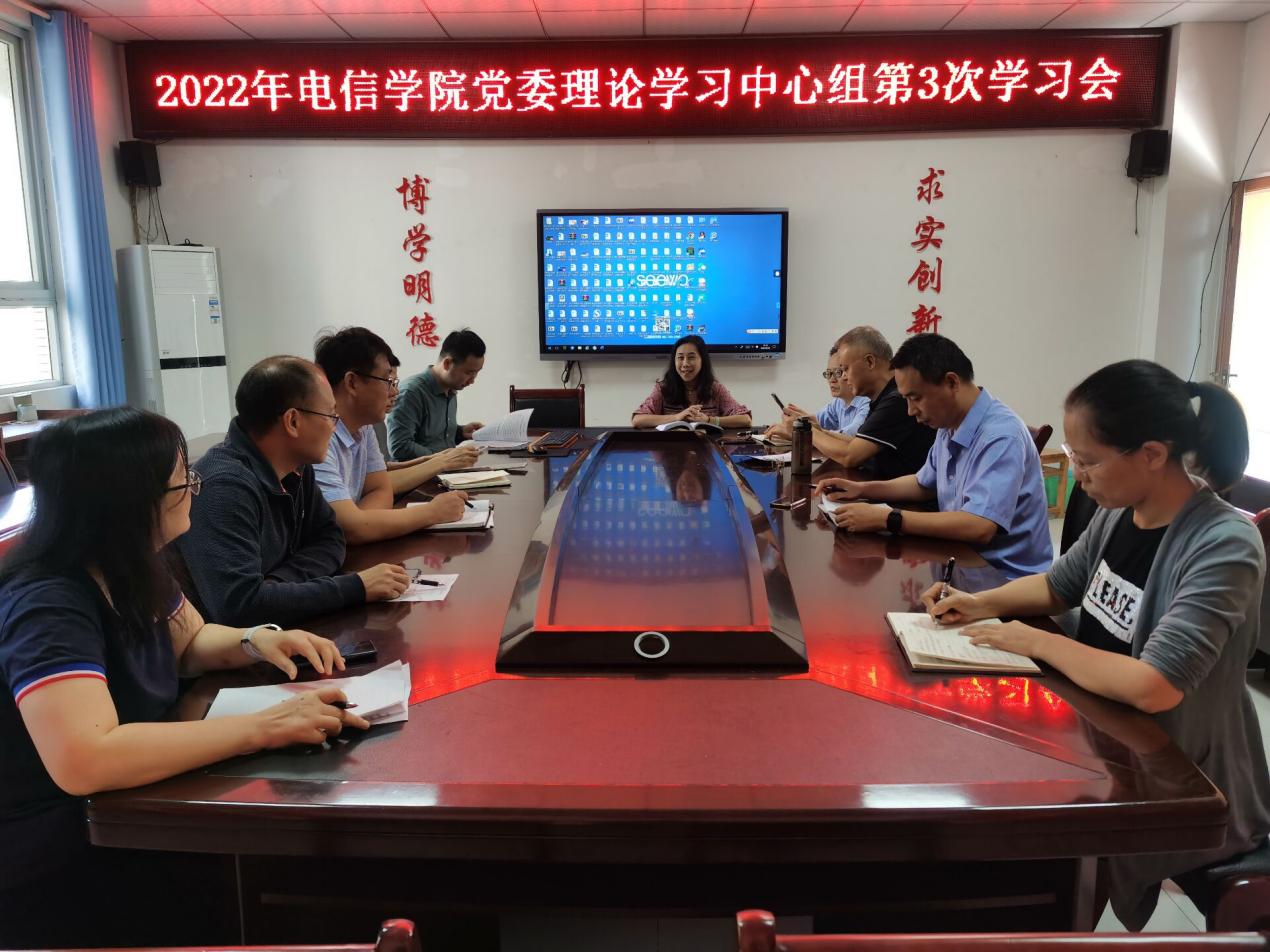 9月29日下午3点,电信学院党委在格物楼1417召开了理论中心组第3次学习会。会议由党委书记张敏主持,全体班子成员、党委委员参加会议。