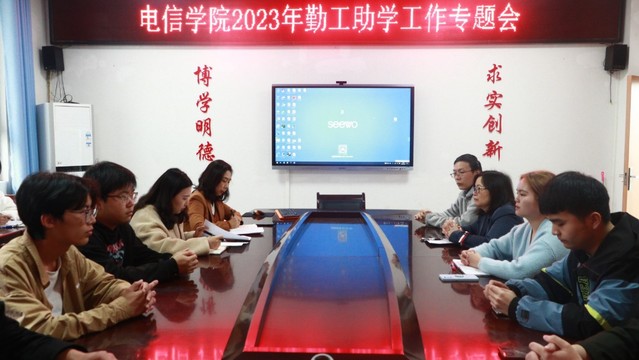 电信学院2023年勤工助学工作专题会通讯员:尹艺蓉 会议伊始,由主席团成员何德凤点名。 接着,各位同学发表入职半个月以来的感受,收获以及存在的问题或困惑。同学们表示,在这几周中学到了不少的技能和知识。