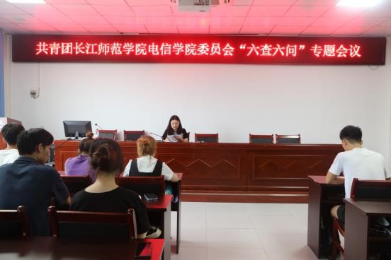 共青团长江师范学院电信学院委员会“六查六问”专题会议共青团长江师范学院电信学院委员会“六查六问”专题会议 通讯员:张玉洁 为进一步加强我院基层团组织的建设工作,不断提升基层团干部整体质量和精神风貌。我院于6月1日13:00在格物楼1508召开团干部“六查六问”专题会议。本次会议由20级辅导员杨倩主讲,团学部门代表参加。