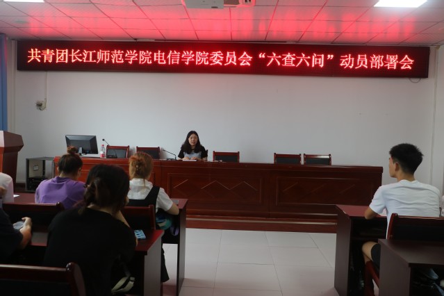 共青团长江师范学院电信学院委员会“六查六问”动员部署会共青团长江师范学院电信学院委员会“六查六问”动员部署会 通讯员:张卓晴 为深入开展学习贯彻习近平新时代中国特色社会主义思想主题教育,激励广大优秀年轻干部勇于担当、善于作为。5月19日,电子信息工程学院在格物楼会议室召开团学干部“六查六问”教育活动动员部署会。本次会议由20级辅导员杨倩主持,团委等部门代表参加会议。 会议伊始,20级辅导员杨倩根据团市委、市纪委机关、市委直属机关工委、市教委、市国资委联合印发的《重庆市青年干部“六查六问”教育活动深化“青春倡廉”行动工作方案》要求,结合学校制定的实施方案。对本次教育活动的指导思想、工作原则、工作任务、实施步骤、工作要求进行全面讲解。接着,她紧扣共青团的根本任务、政治责任和工作主线,强调开展“六查六问”专项行动的意义。