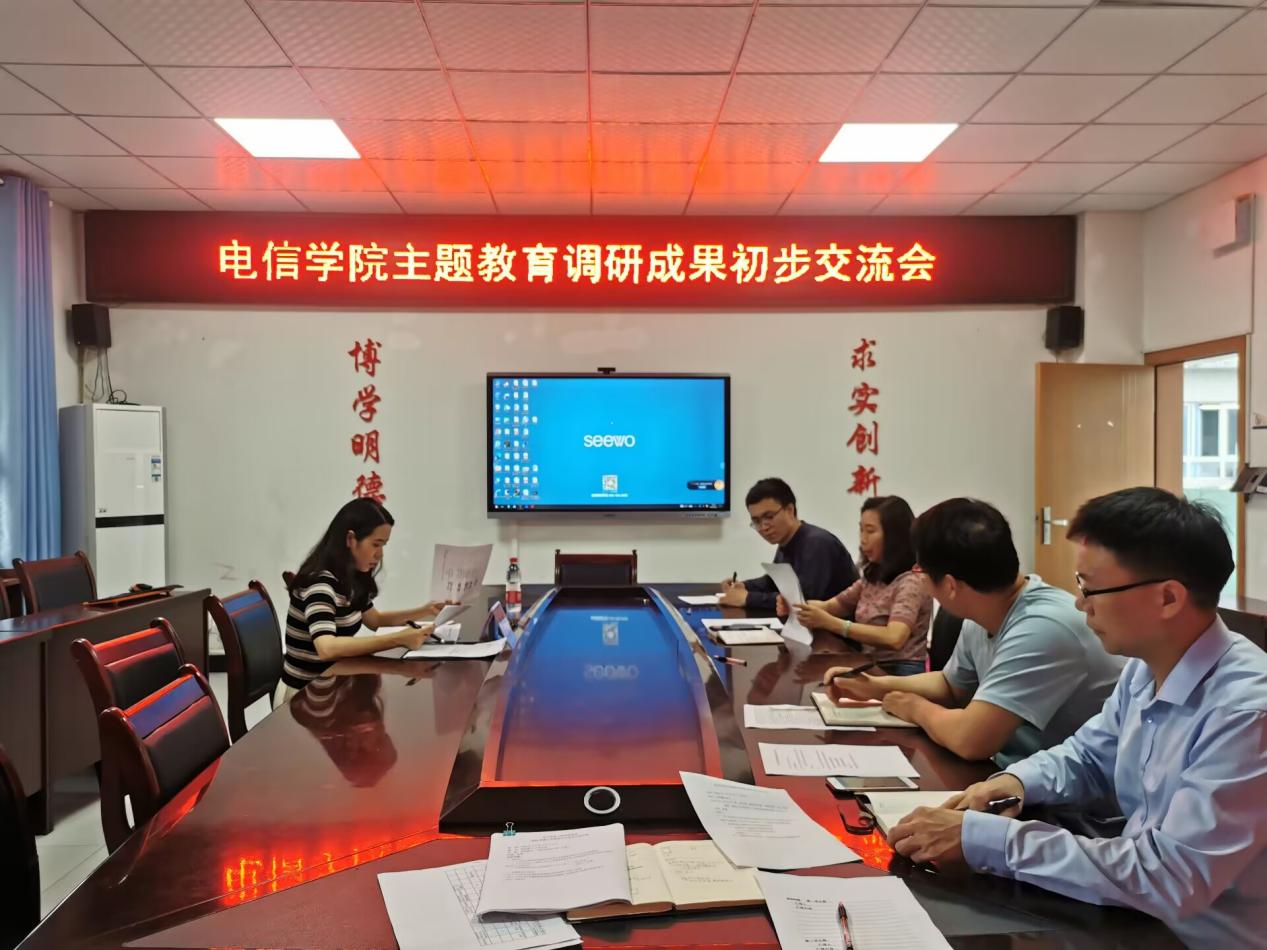 电信学院召开主题教育调研成果初步交流会根据学校深入开展调查研究的工作安排,2023年6月21日,电信学院召开了主题教育调研成果初步交流会。电信学院科以上干部、系主任、辅导员代表、教师代表、民主党派代表参会。学校国内合作处处长、学校主题教育督导三组组长谢艳同志代表学校主题教育督导组参会。 电信学院党委书记张敏主持会议,会议学习了习近平总书记在学习贯彻习近平新时代中国特色社会主义思想主题教育工作会议上的讲话—关于调查研究的重要精神,宣读了学院主题教育调研初步成果报告,班子成员围绕调研课题进行交流发言。 张敏书记从四个方面部署落实下一步工作:一是认真做好整改措施细化工作。,二是认真做好调研的成果转化工作,三是认真做好主题教育深化工作,四是认真做好改革发展强化工作。 谢艳处长对电信学院主题教育调研工作给予了高度评价,总结为“三心”:组织用心、选题专心、调研精心,并提出了4条建议:一是进一步凝练调研报告的主题,二是梳理调研报告的逻辑,三是丰富调研报告的呈现形式,四是关注调研成果的转化。 通过主题教育调研成果初步交流会,使我院对主题教育调研工作做了阶段性的总结,为下一步持续开展调研工作,丰富调研成果,解决学院发展的瓶颈性问题打下了良好的基础。